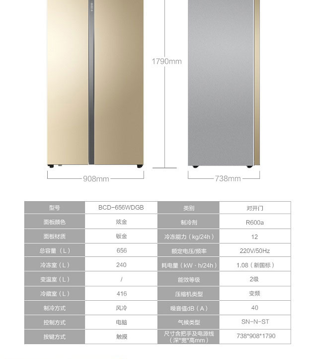 • BCD-656WDPT海爾變頻對開(kāi)門(mén)冰箱