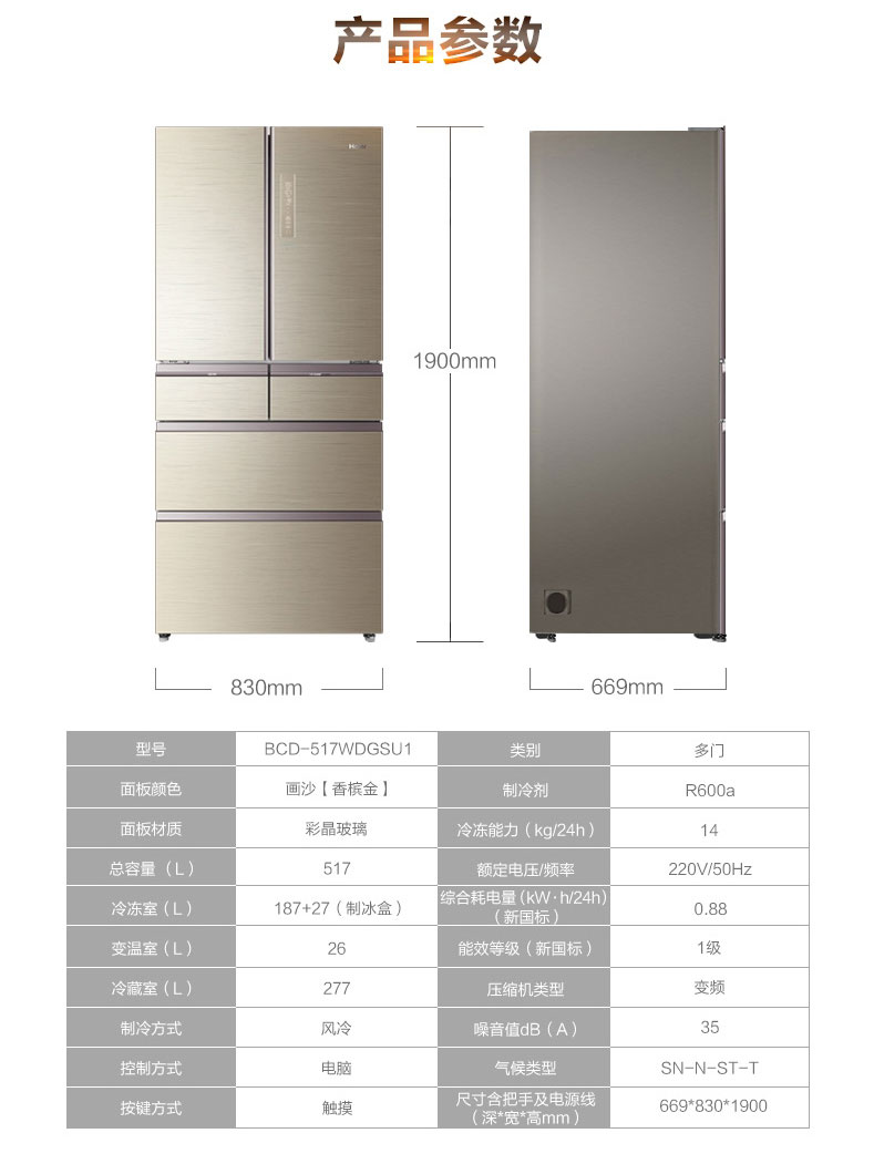 • BCD-517WDGSU1海爾變頻無(wú)霜多門(mén)冰箱