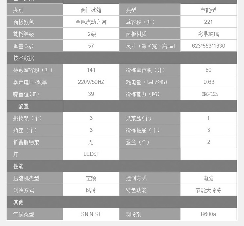 • BCD-221WDGQ海爾兩門(mén)風(fēng)冷無(wú)霜冰箱